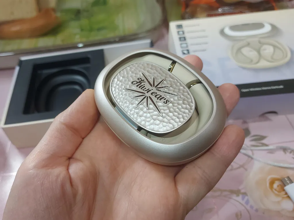 I really like their design, especially the case. It feels great in the hand, and opening the lid is like opening a seashell with two pearls inside — a very pleasant sensation. However the window in the case lid could ideally be covered with transparent glass to prevent dust or sand from entering… but perhaps this open window is exactly what gives the case its seashell‑and‑pearls aesthetic.