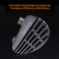 The hollow shell design of the KZ Symphony enhances the efficiency of its sound transduction, minimizing vibration and delivering sound more powerfully. This design optimization ensures pristine sound reproduction, maximizing the strengths of both planar and dynamic drivers.