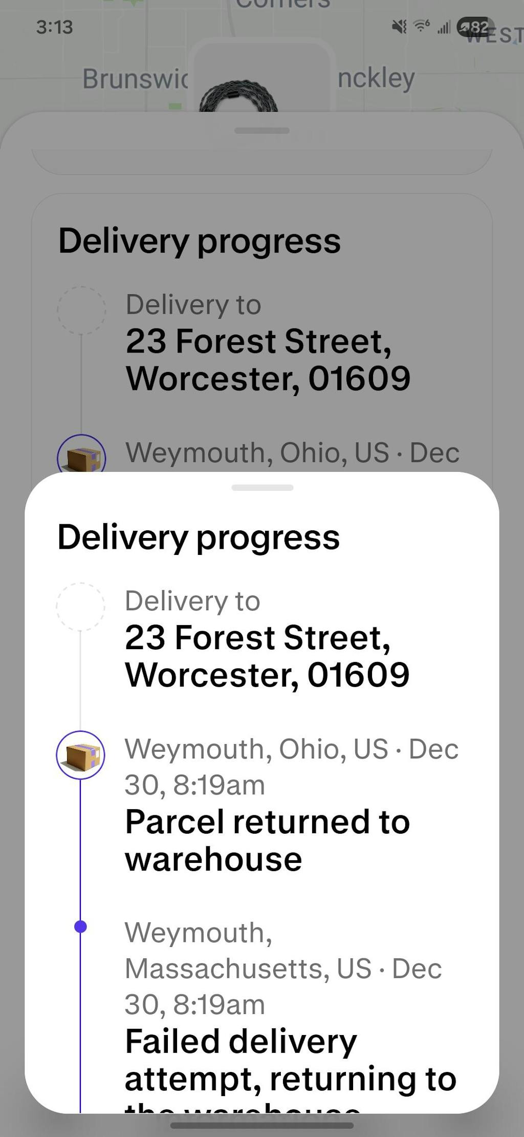 Please note that the location associated with the address you provided at checkout is a parking lot/road/grass area with no valid delivery address, which has resulted in a failed delivery of your package. We sincerely apologize for this unfortunate situation.