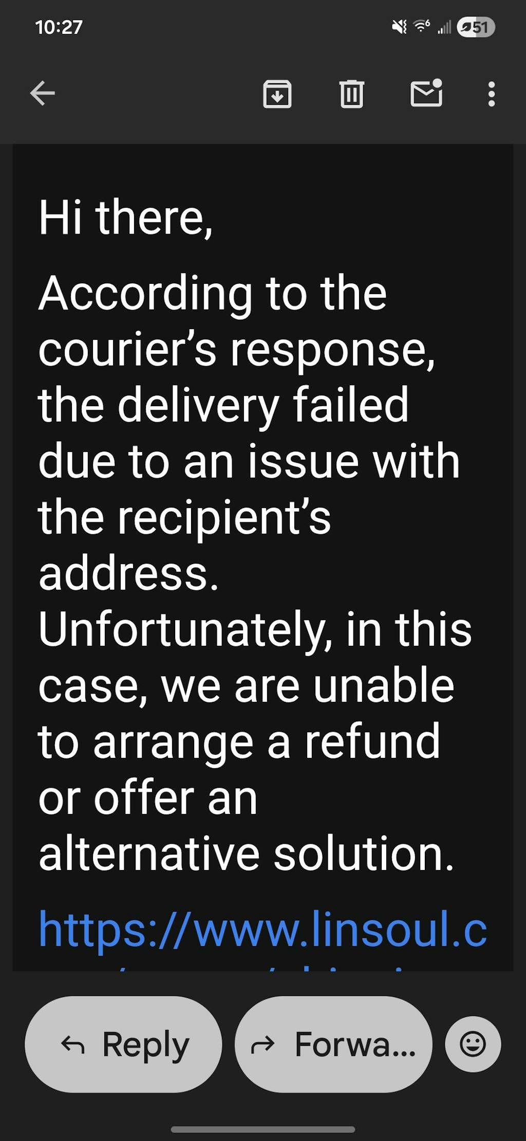 - Recipient was uncontactable when courier company contacted