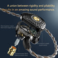 The Zinc alloy faceplate utilizes five-axis CNC machining to ensure high precision operation and better surface finishing. The ergonomics housing cast with imported semi-transparent resin. Together, they give an exquisite and luxurious sonic presentation